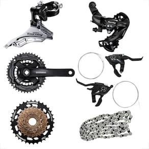 KIT TRANSMISSÃO COMPLETO COM SHIMANO TOURNEY 21V PEDIVELA 3 COROAS RODA LIVRE 7 VELOCIDADES.