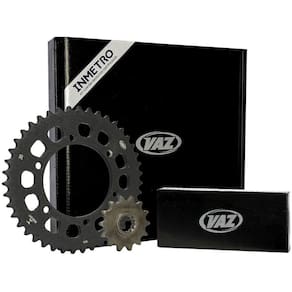Para as motos rodarem tranquilas e apreciarem cada quilômetro, a VAZ criou o Kit Relação Transmissão que possui uma presença maior de carbono, sendo mais resistente e seguro, ele conta com toda a durabilidade que você precisa para rodar tranquilo e sem problemas. Ele é composto por uma coroa, um pinhão e uma corrente.