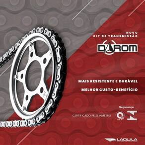 Com certificação do Inmetro, os kits de transmissão e as correntes Darom oferecem qualidade e durabilidade, com resistência acima do padrão exigido. Por um valor acessível, com Darom você atinge desempenho igual ao de peças originais da moto.