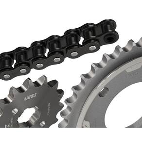 Kit Transmissão Hardt Resistencia a cada Giro Produzidas para atender os mais exigentes consumidores os kits transmissão Hardt prezampela qualidade e se destacam pela sua performance resistência e durabilidade.Reconhecida pelos motociclistas, como um produto de "Qualidade Premium". os kits transmissão Hardt são produzidos em aço 1045, certificado conforme normasrnacionais, SAE . A coroa e o pinhão recebem tratamento térmico por indução, o quegarante melhor defesa contra o desgaste dos dentes e preserva a integridade do núcleo nos impactos. A corrente reforçada, com tratamento especial na cor preta complementa aqualidade do kit transmissão Hardt. Certificada pelo Inmetro os kits Hardt atendem todosos requisitos para atingir ou superar o nível de qualidade das peças . Kit transmissão Hardt Cg 125 Com Retentor Código Produto: 15900 Aplicação: CG 125 Marca: HARDT Ano: TODOS Medidas: 43Z/14Z/118L/428HO Coroa 43 dentes: Aço 1045 Certificado INMETRO: BRA18/02395 Pinhão 14 dentes: Aço 1045 Certificado INMETRO: BRA18/02394 Corrente: Aço 1045 Certificado INMETRO: BRA18/02393 Tamanho: 118Elos Passo: 428 HO com retentor: Sim Cor: Preta Marca: Não Informado Ean: 7898643020539
