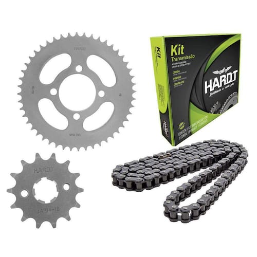 Kit Transmissão HardtResistencia a cada GiroProduzidas para atender os mais exigentes consumidores os kits transmissão Hardt prezampela qualidade e se destacam pela sua performance resistência e durabilidade.Reconhecida pelos motociclistas, como um produto de "Qualidade Premium". os kitstransmissão Hardt são produzidos em aço 1045, certificado conforme normasrnacionais, SAE . A coroa e o pinhão recebem tratamento térmico por indução, o quegarante melhor defesa contra o desgaste dos dentes e preserva a integridade do núcleonos impactos. A corrente reforçada, com tratamento especial na cor preta complementa aqualidade do kit transmissão Hardt. Certificada pelo Inmetro os kits Hardt atendem todosos requisitos para atingir ou superar o nível de qualidade das peças originais. Kit transmissão HardtXtz 125 Código Produto 55509Aplicação XTZ 125Marca HARDTAno TODOSMedidas 48Z/14Z/126L/428HCoroa 48 dentes Aço 1045Certificado INMETRO BRA18/02395Pinhão 14 dentes Aço 1045Certificado INMETRO BRA18/02394Corrente Aço 1045Certificado INMETRO BRA18/02393Tamanho 126 ElosPasso 428 HCom retentor NãoCor Preta