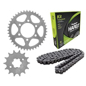 Kit Transmissão Hardt Resistência a cada Giro Produzidas para atender os mais exigentes consumidores os kits transmissão Hardt prezam pela qualidade e se destacam pela sua performance resistência e durabilidade.Reconhecida pelos motociclistas, como um produto de "Qualidade Premium". Os kits de transmissão Hardt são produzidos em aço 1045, certificado conforme normas nacionais, SAE . A coroa e o pinhão recebem tratamento térmico por indução, o que garante melhor defesa contra o desgaste dos dentes e preserva a integridade do núcleo nos impactos. A corrente reforçada, com tratamento especial na cor preta complementa a qualidade do kit transmissão Hardt. Certificada pelo Inmetro os kits Hardt atendem todos os requisitos para atingir ou superar o nível de qualidade das peças . Kit transmissão Hardt Xtz Crosser 150 Código Produto: 55523 Aplicação: XTZ CROSSER 150 Marca: HARDT Ano: 2015 EM DIANTE Informações técnicas Medidas : 41Z/14Z/122L/428H Coroa 41 dentes: Aço 1045 Certificado INMETRO : BRA18/02395 Pinhão 14 dentes: Aço 1045 Certificado INMETRO: BRA18/02394 Corrente : Aço 1045 Certificado INMETRO: BRA18/02393 Tamanho: 122 Elos Passo: 428 H com retentor : Não Cor : Preta Marca: Não Informado Ean: 7898918339069