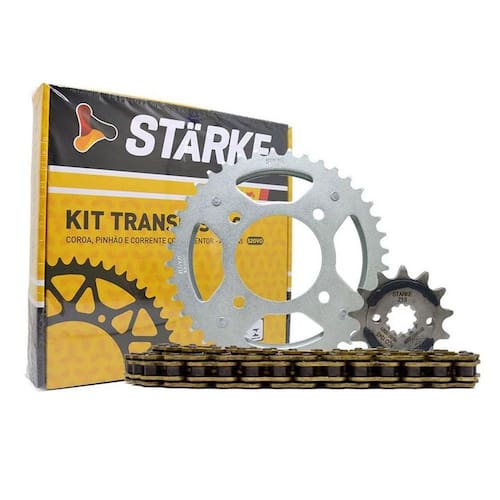 Para as motos rodarem tranquilas e apreciarem cada quilômetro, a starke criou o Kit Relação Transmissão Titanium. Feito em aço 1045, que possui uma presença maior de carbono, sendo mais resistente e seguro, ele conta com toda a durabilidade que você precisa para rodar tranquilo e sem problemas. Ele é composto por uma coroa, um pinhão e uma corrente.