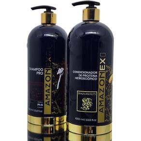 O Shampoo PRO Ph6 AMAZONE NUT Amazonex, promove uma intensa limpeza nos fios, preparando as fibras capilares e o pH para melhor absorção do Condicionador Proteico Amazonex. Modo de uso: Com os fios úmidos aplique o Shampoo PRO Ph6 Amazone Nut Amazonex por toda a extensão e massageie suavemente até formar uma espuma rica e cremosa. Enxágue e aplique novamente se necessário, até que os fios estejam limpos e prontos para seguir o próximo passo. Após esse procedimento seque os fios 100%. E proceder com a aplicação do Condicionador Proteico Hidroscópico. Precauções: Uso externo. Mantenha fora do alcance de crianças. Conservar em local de contato com os olhos enxágue com água Fabricad fresco e ao abrigo da luz e do calor. Em caso em abundância. Não aplicar de o couro cabeludo estiver lesionado ou irritado Havendo irritação suspenda o uso e procure orientação médica. === O Condicionador Proteico Hidroscópico AMAZONE NUT Amazonex tem um alto poder anti oxidante e Anti aging, rico em ômega 3,6 e 9, ainda contém outros nutrientes que rejuvenescem, reconstroem e recuperam a estrutura da fibra de dentro para fora dando nova vida aos cabelos. Modo de uso: Com auxílio de um pente fino, divida os cabelos em 4 partes e aplique o Condicionador Proteico Hidroscopico AMAZONE NUT Amazonex mecha a mecha das raízes as pontas. Deixe agir por 50 minutos. Após a pausa enxágue muito bem com água em abundância até que perceba que não restou nenhum resíduo do creme, em seguida seque 100% alinhando os fios e passe a prancha mecha a mecha, mais na raíz, menos has pontas. Dica: em cabelos finos ou tratados misturar com a Máscara Professional CORTEX BABAÇU Amazonex 1/10 Precauções: Mantenha em local fresco, ao abrigo de luz intensa e calor excessivo e fora do alcance das crianças. Não ingerir. Em caso de contato acidental com os olhos enxaguar abundantemente. Suspenda o uso e procure orientação médica Havendo Marca: Não Informado
