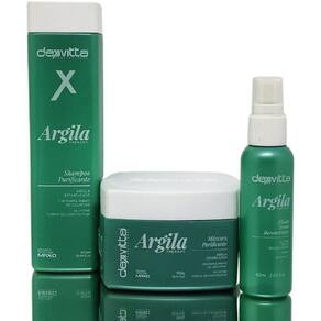 Indicada para todos os tipos de cabelos. As propriedades da argila estabilizada fortalecem as fibras capilares, diminuem a queda, auxiliam no combate a oleosidade e promovem hidratação nos cabelos. Sua fórmula contém uma diversidade de oligoelementos que associados ao crosspolímero de gelatina e ao silicone termo reconstrutor garantem efeito reconstrutor, nutritivo e hidratante aos cabelos. Argila therapy Shampoo purificante 300ml Argila estabilizada Crosspolimero de gelatina Silicone Termo reconstrutor Exclusiva tecnologia max-d O shampoo argila therapy dexvitta foi desenvolvida com exclusiva formulação italiana para todos os tipos de cabelos. As propriedades da argila estabilizada fortalecem as fibras capilares, diminuem a queda, auxiliam no combate a oleosidade e promovem hidratação nos cabelos. Sua fórmula contém uma diversidade de oligoelementos que associados ao crosspolimero de gelatina e ao silicone termo reconstrutor garantem efeito reconstrutor, nutritivo e hidratante aos cabelos. Modo de usar: aplicar sobre os cabelos úmidos e massagear suavemente o couro cabeludo com movimentos circulares. Enxaguar em abundância e repetir a operação. Deixar em pausa por 3 minutos na segunda aplicação. Enxaguar abundantemente. Composição: aqua, sodium laureth sulfate, cocamidopropyl betaine, citric acid, distearate, cocamide mea, clay, gelatin dimethicone/vinyl guar chloride, sulfate, sodium lauryl sodium citrate, parfum, glycol crosspolymer, dimethicone crosspolymer, sorbitol, panthenol, trehalose. Fructose, tetrasodium hydroxypropyltrimonium edta, Butylphenyl methylpropional, citral, citronellol, coumarin, limonene, linalool, methylchloroisothiazolinone, methylisothiazolinone === Máscara purificante 300g Argila estabilizada Crosspolimero de gelatina Silicone Termo reconstrutor A máscara argila therapy dexvitta foi desenvolvida com exclusiva formulação italiana para todos os tipos de cabelos. As propriedades da argila estabilizada fortalecem as fibras capilares, diminuem a queda, auxiliam no combate a oleosidade e promovem hidratação nos cabelos. Sua fórmula contém uma diversidade de oligoelementos que associados ao crosspolimero de gelatina e ao silicone termo reconstrutor garantem efeito reconstrutor, nutritivo e hidratante aos cabelos. Modo de usar: após lavar os cabelos com o shampoo argila therapy aplique a máscara argila therapy em toda a extensão dos fios, enluvando cuidadosamente mecha a mecha. Deixe agir por 10 minutos e enxague em abundância, finalize como desejar Composição: aqua, cetearyl alcohol, dimethiconeizar os efeitos reconstrutores, nutritivas a stearamidopropyl dimethylamine, d therapy mecha glycerin, behentrimonium chloride, parfum, glycol, polysilicone-29, quaternium-18, clay, gelatin crosspolymer, trehalose, fructose, amodimethicone, sodium chloride, disodium edta butylphenyl methylpropional citral cornelia coumarin, limonene, linalool, methylchloroisothiazolinone, methylisothiazolinone, lactic acid === Fluido termo reconstrutor 60ml Silicone Termo reconstrutor Argan Vitamina e Termo reconstrutor garantem efeito reconstrutor. Nutritivo e hidratante aos cabelos. Modo de usar: espalhe na palma da mão algumas gotas do fluido termo reconstrutor argila therapy e aplique nas pontas dos cabelos