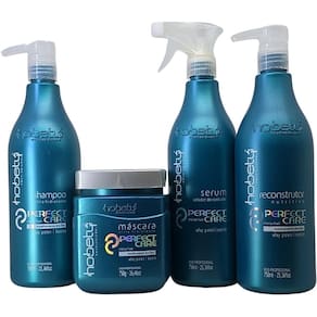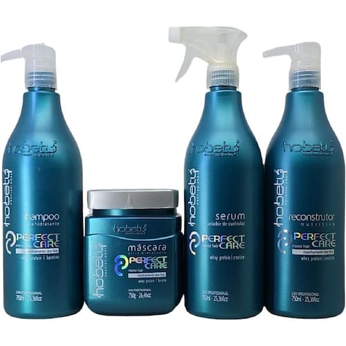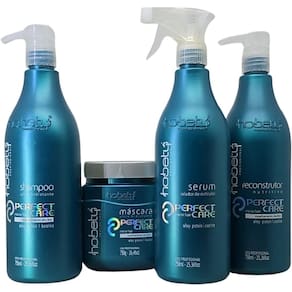 Kit Perfect Care Hobety Cauterização 4 Itens Hobety Kit Espelhamento dos Fios Reconstrução e Nutrição Perfect Care O Kit Perfect Care é uma Reconstrução Capilar que promove o espelhamento dos fios, deixando-os altamente hidratados, nutridos e com muito brilho. Possui Whey Protein proteína do leite , Creatina, Glicina e Tirosina. Produto livre de parabenos e sulfatos. O pode utilizar o Shampoo + Serum para realizar selagem ou redução de volume, nos casos em que a cliente já possua fios lisos e queira reduzir o frizz. Perfect Care é uma linha reconstrutora de fios com proteínas do leite whey protein e aminoácidos creatina, glicina e tirosina , que atuam na nutrição e hidratação profunda. O sérum selador de cutículas finaliza o processo revelando o espelhamento dos fios. Modo de usar : Aplicar sobre os cabelos úmidos o Perfect Care Shampoo Ultra Hidratante massageando suavemente em movimentos circulares. Enxaguar e repetir o processo. Retirar o excesso da água e aplicar o Perfect Care Máscara Ultra Hidratante enluvando mecha a mecha, deixe agir por 10 minutos e enxaguar. Aplicar o Perfect Care Reconstrutor Nutritivo mecha a mecha, enluvando os fios e deixando agir por aproximadamente 20 minutos. Para melhores resultados usar touca térmica. Enxaguar. Borrifar em toda a extensão dos fios, de forma uniforme, o Perfect Care Serum sem enxaguar. Em seguida secar e pranchar os fios para a obtenção do espelhamento do fio. Itens do kit 01 Shampoo 750 ml 01 Máscara 750 gr 01 Serum 750 ml 01 Reconstrutor 750 ml Marca: Não Informado