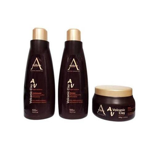 Kit Tratamento Volcanic Clay Alkimia 500mlIdeal para cabelos que necessitem de uma limpeza profunda. Sua fórmula especial trata os cabelos quimicamente tratados, dando brilho e vitalidade natural.Ação:Nutre profundamente e controla o volume dos cabelos alisados e coloridos, desenvolvendo brilho, maciez e vitalidade.Modo de uso:1 - Aplique o shampoo sobre os cabelos molhados, massageando levemente, e enxague. Se necessário, repita o processo.2 - Aplique o condicionador sobre os fios, ainda úmidos, massageando suavemente. Deixe agir por 2 minutos e enxague bem.3 - Após o processo de alisamento de sua preferencia, aplique quantidade suficiente da máscara. Deixe agir por 10 minutos e enxágue bem. Indicada para o uso de 1 a 2 vezes por semana.Contém : 1 Shampoo1 Condicionador 1 MáscaraResolução ANVISA 343/05