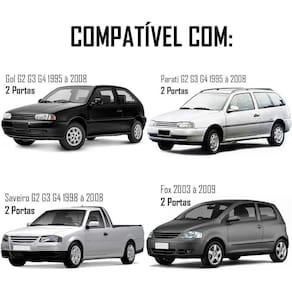 Compatível com: - Gol 2 portas G2 G3 G4 de 1995 até 2008; - Parati 2 portas G2 G3 G4 de 1995 até 2008; - Saveiro G2 G3 G4 de 1998 até 2008; - Fox 2 portas de 2003 até 2009.