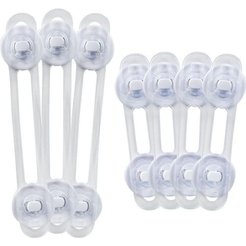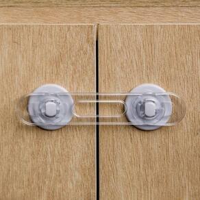 Características Contém: 04 Travas Pequenas e 03 Travas Grandes; Composição: 55% Policloreto de Vinila (PVC), 45% Acrilonitrila Butadieno Estireno (ABS) / Fita Adesiva: 3M; Trava Gavetas, Portas e Vasos Sanitários;