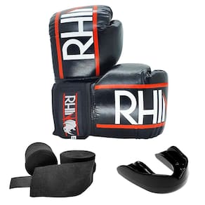 O kit reúne os itens básicos para treinamento de Boxe e Muay Thai ou Kickboxing. Todos os produtos são da marca nacional Rhino.
