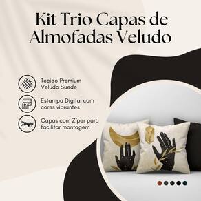 Kit Trio Capas De Almofadas Estampadas Folhas Em Veludo Suede 45cm X 45cm - Decoração Para Sala Cor Preto