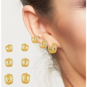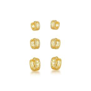 Kit Trio de Brincos Argolas Amor Banhados a Ouro 18k -