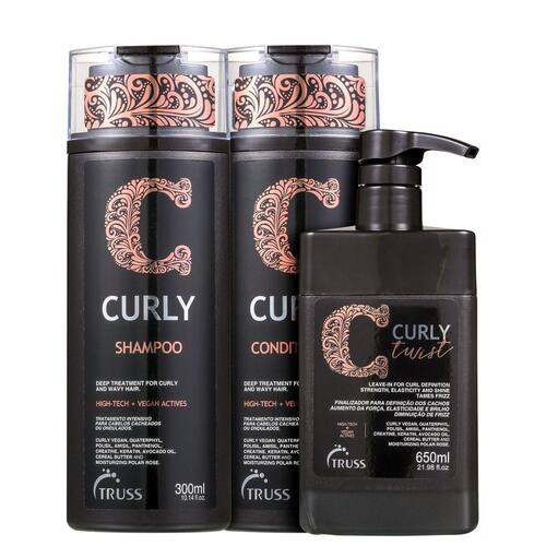 Kit Truss Curly Trio, além de dar acabamento ao cabelo, hidrata e elimina o aspecto ressecado. Seus cachos ganham definição impecável e aparência saudável sem pesar.
