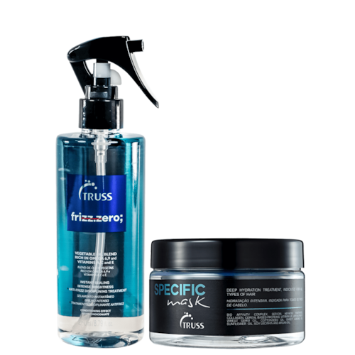 O Kit Truss Frizz Zero Specific confere emoliência e disciplina aos fios para que eles fiquem macios, com brilho e maleáveis novamente, além de selar a cutícula capilar, hidratar e devolver rapidamente a maleabilidade, o brilho e a maciez aos fios.