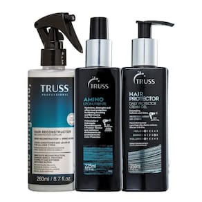 A Ísis Cosméticos é uma empresa que atua no ramo de produtos para beleza, cosméticos e cuidados pessoais. Nós da loja Ísis Cosméticos trabalhamos com as principais marcas do mercado, levando até você os melhores produtos e lhes oferecendo uma ótima experiência. Somos uma empresa que preza pela confiança e satisfação de nossos clientes. ========================================================================================= Kit com tratamento reconstrutor, leave-in e protetor térmico. TRUSS Uso Obrigatório Amino Hair Protector reúne produtos para um cuidado especial dos cabelos, com proteção intensa e reparação. O Kit TRUSS Uso Obrigatório Amino Hair Protector repara danos, hidrata profundamente e protege contra agressões diárias, dos raios UV, calor do secador e dos danos mecânicos causados pela escova. Com este kit, você terá uma rotina de cuidados especiais para os cabelos, garantindo fios saudáveis, fortes e com um brilho radiante. Conselho de Aplicação Uso Obrigatório: borrife o spray de 2 a 3 vezes, no comprimento e pontas mecha a mecha, após o shampoo e antes do condicionador ou máscara. Massageie e enxágue para ter o efeito condicionante. Também pode ser como leave-in finalizador borrifando de 2 a 3 vezes no comprimento e pontas. Hair Protector: aplique uma pequena quantidade do leave-in na palma das mãos e distribua sobre comprimento e pontas dos cabelos úmidos. Depois, seque seus fios com o auxílio do secador e modele como desejar. Amino: borrife mecha a mecha antes de passar a prancha ou secar com secador. Para não deixar os fios pesados, aplique o produto aos poucos no cabelo. Repartir o cabelo em mechas é uma boa maneira de gerenciar a quantidade. Nossos Experts Ensinam Leave-ins, protetores térmicos e tratamentos, se com frequência, ajudam a manter a saúde dos fios intacta por mais tempo. Este item contém TRUSS Uso Obrigatório - Tratamento Líquido Reconstrutor 260ml: é o tratamento ideal para cabelos danificados e ressecados. Sua fórmula avançada promove reconstrução imediata, hidratação profunda e proteção contra os danos diários, reconstruindo a fibra capilar e até 87% menos quebra. Age como um tratamento instantâneo, desembaraçando, proporcionando força, condicionamento e maciez aos fios. TRUSS Hair Protector - Leave-in 250ml: é ideal para todos os tipos de cabelos. Ele assegura fios totalmente hidratados e protegidos contra os efeitos do uso de ferramentas de calor. Além disso, torna mais fácil o processo de pentear e desembaraçar os cabelos, selando os fios de maneira eficaz. TRUSS Amino - Protetor Térmico 225ml: é um protetor térmico para cabelos, ideal para finalizar todos os tipos de fios. Diminui o tempo de secagem dos fios e evita os danos causados pelo calor do secador e da prancha. Sela os fios, o que proporciona maciez, controle, brilho e facilidade ao pentear e ao deslizar os acessórios térmicos. ========================================================================================= Anúncio composto por: 01unid. Hair Protector - Leave-in 250ml 01unid. Uso Obrigatório - Tratamento Líquido Reconstrutor 260ml 01unid. Amino - Protetor Térmico 225ml SKU Interno: IS01265 Agradecemos a preferência.