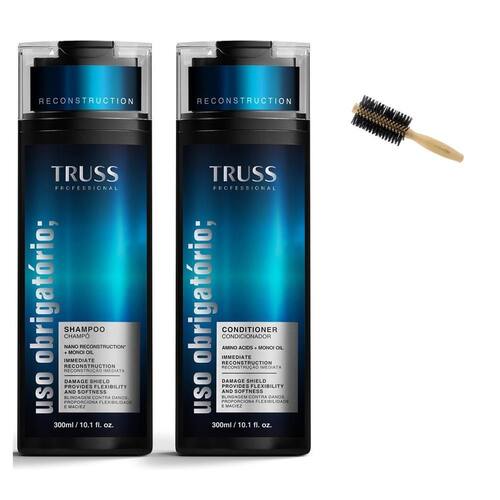 Shampoo para cabelos ressecados ou secos. TRUSS Uso Obrigatório limpa suavemente, reduzindo os danos, hidratando e selando as cutículas. br / br / O Shampoo TRUSS Uso Obrigatório veio com cara nova, trazendo reconstrução imediata blindagem contra danos, proporcionando flexibilidade e maciez.br / br / Confere suavidade e brilho aos fios e possui ação antidesbotamento, antifrizz e antiquebra, além de ajudar a proteger das agressões diárias.br / br / A MQ traz seus produtos de alta praticidade, com a qualidade MQ e a tecnologia necessária para resultados incríveis. Ideal para pentear e desembaraçar.br / Leve e ergonômica, massageia o couro cabeludo, estimula o crescimento saudável do fio reduzindo a queda de cabelo.