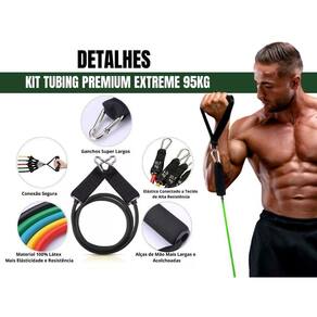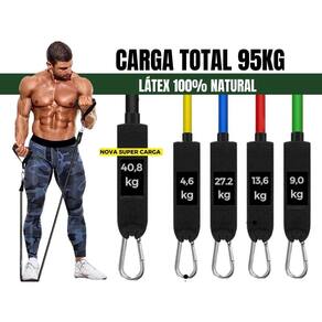 O Kit Premium Extreme vem com 5 elásticos de borracha em forma de tubo duplamente reforçados, feitos de látex 100% Natural. Cada elástico tem 1,20 m de comprimento com garras em metal de alto calibre e que permitem um treino muito mais potente.