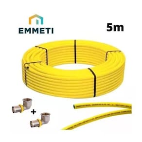 Kit tubo pex multicamada 16mm amarelo emmeti + conexões 5m