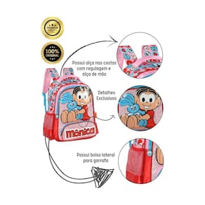 Kit Escolar Turma da Monica Mochila De Costas + Lancheira Térmica Mochila de Costas Escolar Turma da Monica Confeccionada em Poliéster Alças de costas reguláveis e alça de mão Compartimentos espaçosos 2 bolsos laterais para garrafa Design exclusivo Fechamento em zíper Puxadores personalizados Acompanha chaveiro Medidas aproximadas: Altura: 40 cm Largura: 30 cm Comprimento: 15 cm