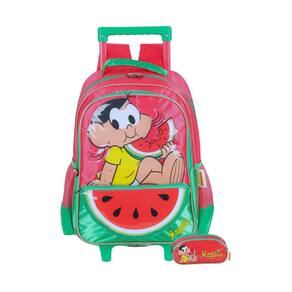 Kit escolar turma da monica mochila de rodinha + estojo triplo mochila de rodinha: Confeccionada em poliéster Fechamento em zíper Puxadores personalizados Compartimentos espaçosos 2 bolsos laterais para garrafa Possui rodas e alças de costas reguláveis e alça de mão Design exclusivo Medidas aproximadas: Altura: 45 cm Largura: 15 cm Comprimento: 30 cm