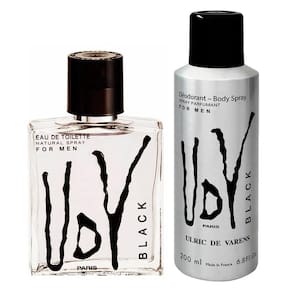 O Kit Contém: 1 Perfume Masculino UDV Black EDT - 100ml 1 Desodorante Body Sparay UDV Black - 200ml Quando um homem usa UDV Black qualquer coisa pode acontecer. São jovens, livres, provocantes e de temperamento surpreendentemente forte, são apaixonados e atraentes, cheios de sensualidade buscam emoções inesperadas. Suas notas de cabeça combinam pomelo, bergamota e maçã verde; gerânio e flores brancas são as notas de coração; como notas de fundo temos sândalo, musgo e vetivér. A Marca: Ulric De Varens, criador de perfumes desde 1981, desenvolve suas próprias fragrâncias para homens e mulheres. Nossa marca é distribuída com sucesso em mais de 90 países e possui, particularmente, forte presença em países como Brasil, França e Alemanha além de outros países. Oferecer perfumes de luxo a preços acessíveis. A estratégia de manter preços acessíveis se tornou possível ao renunciar gastos excessivos em publicidade, ao contrário das "grandes" marcas. Além do que, a ampla divulgação de nossos produtos se dá através do "boca a boca" e de comunicação em redes sociais. O nosso maior diferencial: oferecer produtos de luxo através de fragrâncias de alta qualidade a preços acessíveis. Especificações: Concentração: Eau de Toilette - EDT Família Olfativa: Aromático, Frutal Notas de Topo: Bergamota, Toranja e Maçã verde Notas de Coração: Gerânio, Flores brancas, Alecrim e Pinheiro Notas de Fundo: Tabaco e Almíscar Ean: 3326240045449