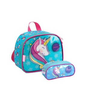 Lancheira Bolsa Térmica Unicórnio Basic - Produzida em poliéster; - Possui 1 bolso lateral 1 frontal e 1 divisão grande; - Forro interno em pvc; - Estampa estilizada; - Zíperes com puxadores reforçados; - Alça transversal removível; - Alça para mão; - Não Acompanha garrafinha e porta lanche ;