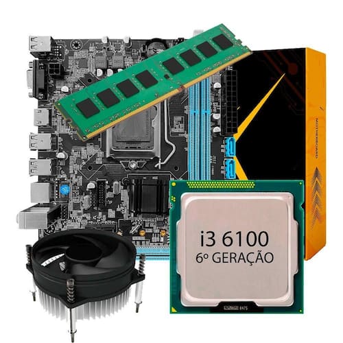 Itens do kit: Processador intel core i3 6100 3.7ghz 1151 Placa mãe h110 soquete 1151 Cooler para processador compatível com 1155 Memória ram ddr4 8gb 2666mhz Características do kit: Processador: Modelo: intel core i3 6100 Número de núcleos: 2 Nº de threads: 4 Frequência baseada em processador: 3.70 ghz Cache: 3 mb smartcache Velocidade do barramento: 8 gt/s dmi3 Tdp: 51 w Placa mãe: Cpu Suporta cpus da série lga 1151 socket i3/i5/i7 Chipset Chipset intel h110/b150/h170 Memória Slots: 2 x ddr4 de 288 pinos Capacidade máxima: até 32 gb Tipo de memória: ddr4 2133/2400/2666 mhz Canal: duplo Bios Bios efi Interfaces 2 x portas usb 2.0 compatível com usb 1.1 2 x portas usb 3.0 1 x porta vga 1 x porta hdmi 1 x porta rj45 1 x porta de áudio line in/line out/mic in 1 x conector de alimentação atx de 24 pinos 1 x conector de alimentação atx 12v de 8 pinos 1 x conector usb, suporta 2 x usb 2.0 1 x conector usb, suporta 2 x usb 3.0 1 x conector faudio 1 x conector fpanel 1 x conector de alto-falante 2 x conectores de ventilador 3 x portas de conexão serial ata 1 x conector com opcional Áudio Codec de áudio hd de 6 canais integrado Fornece interface de áudio frontal e microfone estéreo frontal Lan Lan integrada 10/100/1000 mbps opcional Slot de expansão 1 x slot pci express x16 1 x slot m.2 suporta ssds no modo pcie/sata Dimensão Micro-atx Memória ram: - capacidade: 8gb - 2666mhz - ddr4 - cl 19 - pc4-2666 - tempo de ciclo de linha trcmin : 45.75ns min. - atualizar para ativo / atualizar tempo de comando trfcmin : 350ns min. - tempo ativo da linha trasmin : 32ns min. - potência máxima de operação: tbd w O power varia dependendo do sdram . - avaliação ul: 94 v - 0 - temperatura de operação: 0ºc a +85ºc - temperatura de armazenamento: -55ºc a +100ºc - 288-pin dimm Marca: Não Informado Ean: 7890922727580