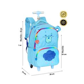 Kit escolar ursinhos carinhosos mochila de rodas 2em1 + lancheira térmica mochila de rodinha: Confeccionada em poliéster Fechamento em zíper Puxadores personalizados Compartimentos espaçosos 2 bolsos laterais para garrafa Possui rodas e alças de costas reguláveis e alça de mão Design exclusivo Acompanha chaveiro Medidas aproximadas: Altura: 55 cm Largura: 15 cm Comprimento: 30 cm