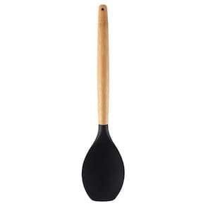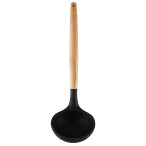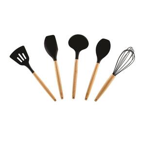 Kit Utensílios 5pç Bambu c/ Silicone Preto - Yoi 1 fuê batedor 1 concha 1 colher 1 espatula reta 1 espátula vazada Material: Silicone Com cabo de bambu Conteúdo da Embalagem: 5 peças