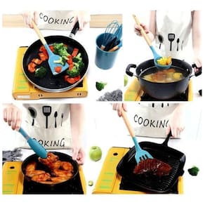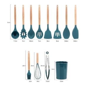 Com 12 peças, capaz de atender a todas as suas necessidades na cozinha, são utensílios antibacterianos, livres de cola, atóxicos, antiaderentes, fáceis de limpar e armazenar. Os utensílios são totalmente livres de BPA.
