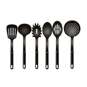 Modelo: Kit 6 Utensílios de Cozinha Material: Plástico de alta resistência Temperatura Suportada: até 180 graus