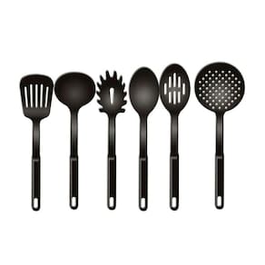 1x Escumadeira 1x Espátula 1x Concha 1x Pegador de Macarrão 1x Colher de Arroz 1x Pegador de Saladas e Carnes