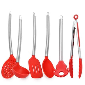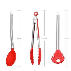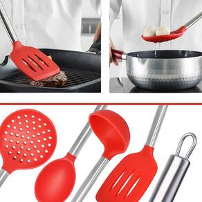 Kit utensilios de cozinha de silicone vermelho cabo inox k4c Utensilios de silicone vermelho para cozinha com cabo inox