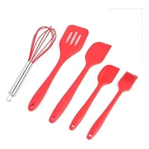 Kit Utensílios De Silicone Maciço Espátulas Concha Cozinha VERMELHO