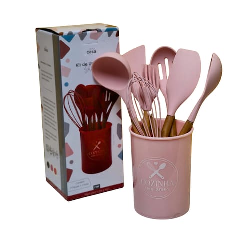 Destaques: Design: aderência, conforto e silicone térmico; Suavidade: maciez, proteção para panelas antiaderentes; Durabilidade: resistente a altas temperaturas, não deforma com facilidade e não resseca; Segurança: material atóxico, não cria bolor/fungos e possui silicone de alta qualidade que não deixa gosto ou odores nos utensílios; Conveniência: fácil de limpar, sem ruídos ao encostar em panelas e outros utensílios.
