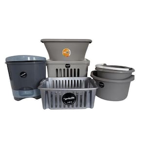 Kit Utilidades de Casa Cinza - Lixeira, Bacias, Cestas e Balde: Um toque de elegância e organização para sua casa Organização com estilo: