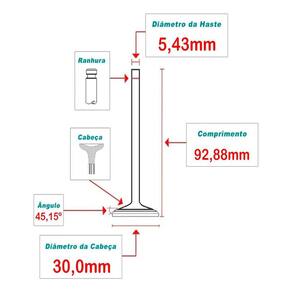 1x VALVULA DE ADMISSAO MAHLE - 30.00 x 5.43 x 92.88 1x VALVULA DE ESCAPE MAHLE - 25.00 x 5.43 x 92.30 2x RETENTORES DE VALVULA CORTECO