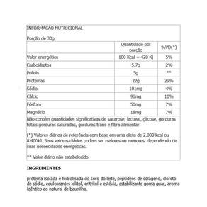 Ingredientes peptideos de colágeno, peptideos bioativos de colágeno, ácido ortosilícico, vitamina c revestida, tocoferol, vitamina a acetato, aromatizante idêntico ao natural de limão siciliano, antiumectante dióxido de silício, aromatizante natural extrato de limão siciliano, acidulante ácido cítrico, edulcorantes estévia e taumatina. Não contém glúten. Produto dispensado de obrigatoriedade rdc nº27/2010 Ean: 7890010022221