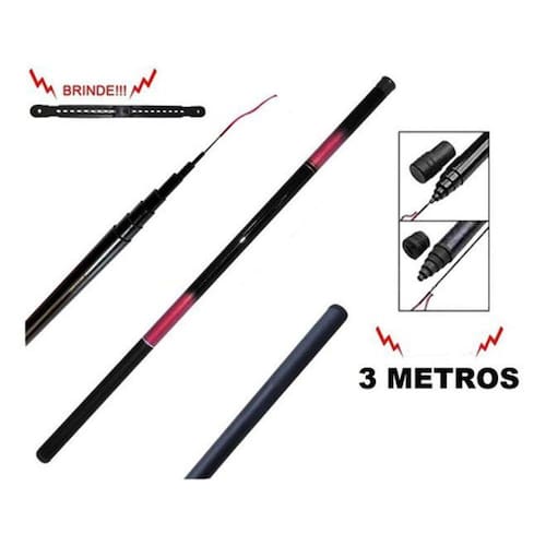 Kit vara telescópica 3 mts + capa + enrolador de linha