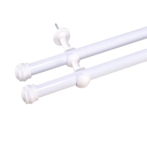Kit Varão Duplo de Cortina 19mm de 3,00 metros Branco Obrigado por visitar nossa loja, temos os melhores produtos de cama, mesa e banho para sua casa com a melhor qualidade e variedade em diversos modelos, todos são rigorosamente revisados. 01 Varão Duplo de 3,00 Metros com Suporte, Ponteiras podem variar e Parafusos Ferro: Espessura 19 mmKit completo, pronto para ser instalado. As fotos são ilustrativas, as cores podem variar de acordo com cada monitor e não representam todas as peças que compõem na foto do produto. Muito obrigada pela sua visita e boas compras.