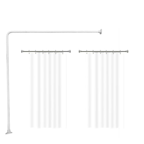 - 01 Varão Bastão Cortina Box Banheiro em L 100cmX100cm Aço - BRANCO