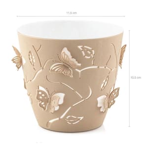 O kit 3 vasos de plantas da Plasvale é uma escolha encantadora e funcional para aqueles que desejam enfeitar seu ambiente, adicionando beleza e vida aos espaços internos. Com essa coleção, você terá a liberdade de criar arranjos deslumbrantes e deixar sua casa ou escritório mais aconchegante e convidativo. Cada um dos vasos para plantas apresentam um design exclusivo, pois possuem detalhes em borboletas que podem ser dobradas e proporcionam um efeito 3D maravilhoso. Feitas de plástico polipropileno resistente, essas floreiras de mesa são compostas por duas peças individuais: a peça interna, na cor branca, que possui furos em sua base para escorrer a água e já a peça externa, na cor bege, não possui furos, para prevenir qualquer sujeira no ambiente decorado. Além disso, a capacidade de florescer sua criatividade é grande com este kit. Você pode plantar uma variedade de plantas, desde suculentas e cactos até flores coloridas, proporcionando uma decoração natural e convidativa.