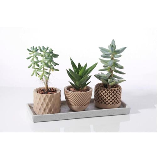Fica bem legal com um vaso sozinho ou também como um kit com 3 vasinhos