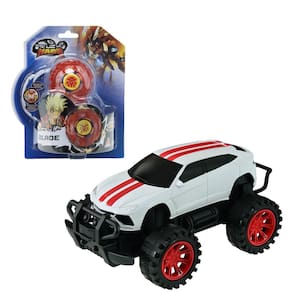 Veículo de rádio controle de 3 funções com funcionamento a pilhas. Utiliza pilhas no carro e no controle. Pilhas não inclusas.