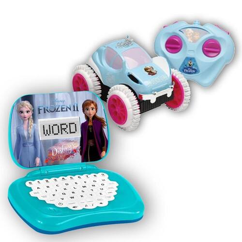 Anna e Elsa estão em uma congelante aventura! Você pode aprender brincando com elas! Este incrível laptop infantil da Frozen é bilíngue (português e inglês) e possui diversos grupos de atividades, como: soma e divisão, perguntas e respostas, letras, palavras, ortografia e música! A brincadeira vai ficar muito mais divertida com suas personagens favoritas! O Veículo Frozen Giro Gelado é perfeito para lhe acompanhar nas mais incríveis brincadeiras!
