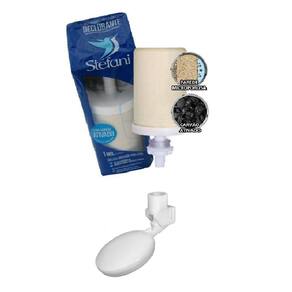 Kit Vela Dupla Ação E Boia Para Filtro De Água De BarroVocê sabia que só 0,002% de água no mundo é doce e potável Por isso é muito importante a filtragem da água para consumo e, nada melhor que a água filtrada no clássico e tradicional filtro de barro. As velas Stéfani são compatíveis com todos os filtros por gravidade do mercado e, sem dúvida, não há meio mais seguro de oferecer água pura e garantir saúde e bem-estarSua parede em material cerâmico micrósporos filtra a água por gravidade, sem adição de produtos químicos, reduzindo impurezas e retendo partículas sólidas, garante água saudável e livre de microrganismos.Kit contendo 1 vela Declorante dupla ação Stefani + 1 boia Stefani (Filtros São João)Especificações:- Dupla Ação - É uma vela declorante que contém em seu interior carvão ativado (GAC - Granular Activated Carbon), um produto de origem vegetal obtido a partir da casca do coco e utilizado mundialmente em sistemas de purificação de água, pois reduz odores, sabores e o teor de cloro presente na água.- Boia: a boia é responsável por evitar o transbordamento da água na parte de baixo do filtro. É de fácil instalação na rosca da vela e permite duplicar a capacidade de armazenamento do filtro.