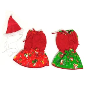 - Ideal para o Verão; - Corpo, confeccionado em malha PV, na cor vermelha; - Saia, confeccionada em tricoline de estampas variadas de Natal; - Acabamento em viés na cor vermelha; - Laço confeccionado no tecido da saia; - Modelo prático e leve para o seu pet; Tamanho P: Medidas Aproximadas: 31 cm de comprimento/costas, 38 cm de circunferência tórax/peito e 23 cm de circunferência pescoço. - Gorro confeccionado em tecido bember na cor vermelha; - Acabamento em pelúcia na cor branca; - Fita de cetim que passa entre as orelhas para proporcionar mais conforto ao animal e fixação do produto sobre a cabeça; - Ideal para animais de pequeno, médio e grande porte. Tamanhos: P - Circunferência 24 cm altura 16 cm. Kit acompanha 2 vestidos tamanho P + um gorro tamanho P. O tecido é leve e confortável e não aquece o cão, pode ser em dias de verão, porém caso esteja muito sol não recomendamos nenhuma vestimenta na sua cachorrinha. Marca: Não Informado