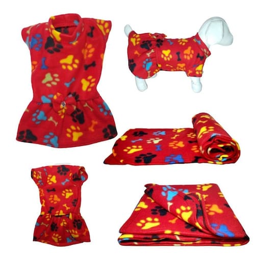 Kit Vestido E Manta Para Cães - Vermelho Colorido M Kit vestido e manta de inverno para cachorro. - os dois em tecido soft; - ótimo para aquecer seu pet em dias de frio; - cor: vermelho com patinhas coloridas; - vestino no tamanho: m; - manta no tamanho: m; Medidas vestido - m: Pescoço - 26 cm de circunferência; abdômen/tórax - 38 cm de circunferência; comprimento - 36 cm. Medidas manta - m: 70 cm de largura x 90 cm de comprimento; Marca: Nicapet