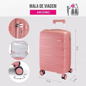 Equipada com rodinhas duplas 360, alça retrátil ajustável, trava de segurança embutida e zíper duplo reforçado, proporciona mobilidade fluida e maior segurança. O interior totalmente forrado possui divisórias e elástico organizador, otimizando o armazenamento.