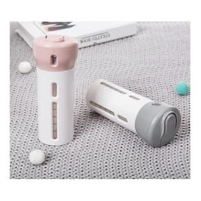 Facilitando sua viagem, permitindo levar seus produtos de forma segura e compacta, com apenas o giro da tampa você altera qual produto sairá do dispenser.